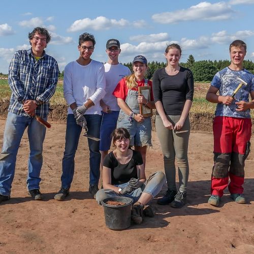 Mit Dr. Peter Henrich als Projektleiter, Daniel Heeren M.A. als Grabungsleiter, 2 Archäologie-Studenten und 2 begeisterten Helfern war ein hervorragendes Team vor Ort. Zusätzlich unterstützten Vereinsmitglieder und Freunde der Archäologie tatkräftig die Grabungsarbeiten.