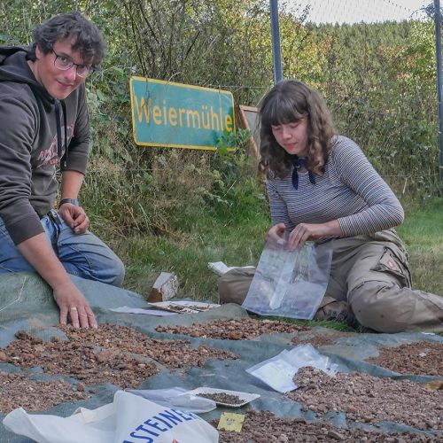 Besonders die Mitarbeit von Schülerinnen und Schülern und einem Lehrer des St. Matthias-Gymnasium Gerolstein in der 3. Grabungswoche hat uns sehr gefreut. Mit StR Dirk Keil als Lehrer im Fach Geschichte erlebten Lukas Block, Melina Nickel, Franziska Thurau und Lotta und Tim Köchner einen Geschichtsunterricht der besonderen Art. Sie wurden 9 km vom Schulstandort entfernt in die Zeit der Römer zurückversetzt und arbeiteten sich gemeinsam mit den Archäologen Schicht für Schicht in den Horizont der Römer hinein. Funde vorsichtig bergen, Befunde zeichnen und dokumentieren, um so die Grabungsergebnisse für die Zukunft festzuhalten – alle waren mit Begeisterung bei der Arbeit und für uns eine wertvolle Unterstützung.