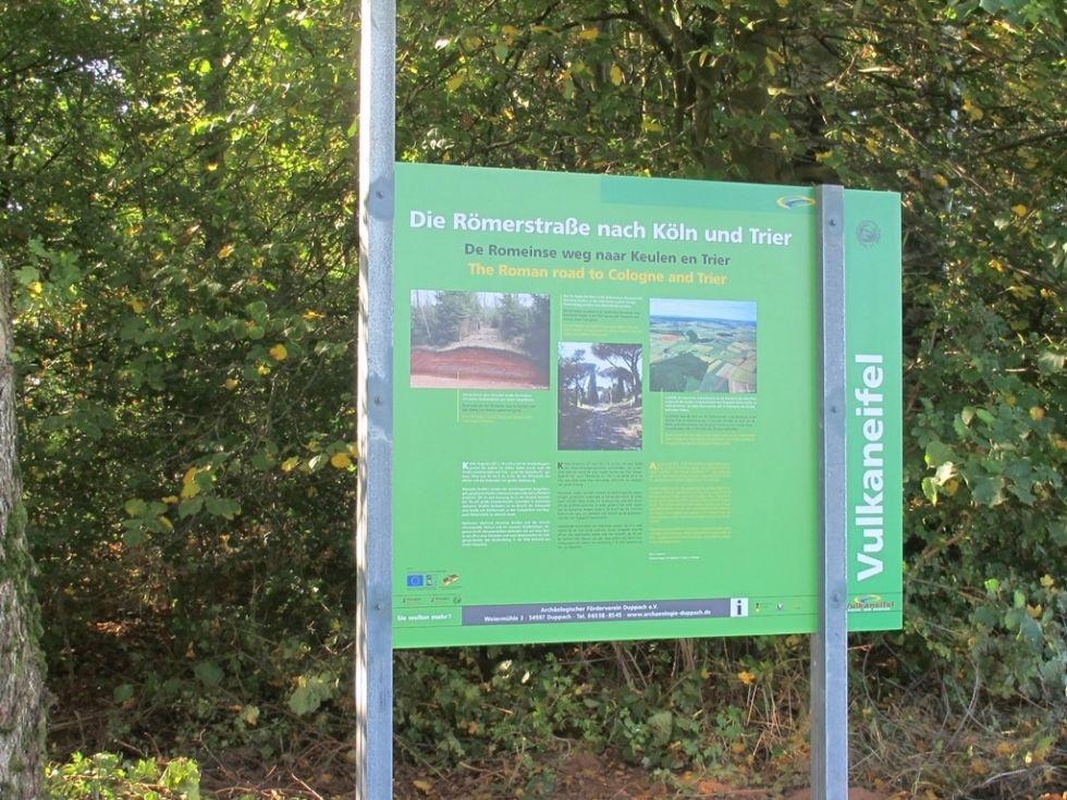 Um den Straßenverlauf der römischen A1 Trier - Köln zu dokumentieren und die Verbindung zu den Römern von Duppach-Weiermühle darzustellen, ist zwischenzeitlich an der Römerstraße zwischen Scheuern und Weiermühle eine Informationstafel aufgestellt worden.