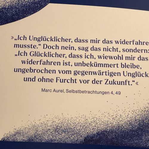 In seinen Aufzeichnungen, die wohl größtenteils während seiner Feldzüge entstanden sind, verfasste er ein besonderes Werk: SELBSTBETRACHTUNGEN – diese gehören zu den eindrucksvollsten Texten der Weltliteratur.