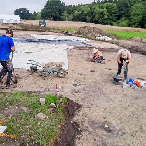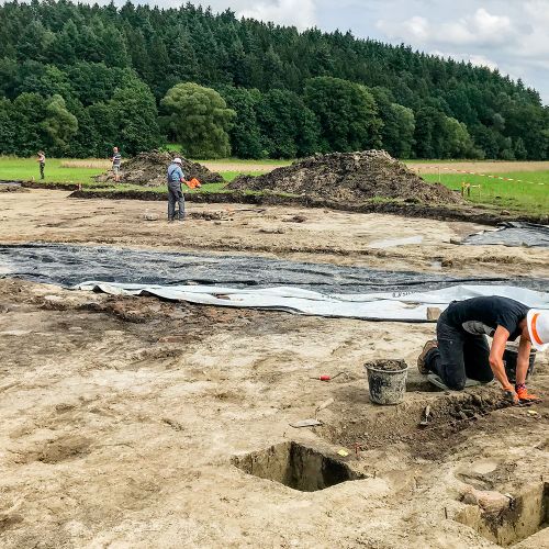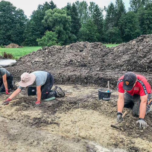 Nach der zweiten abwechslungsreichen Woche konnten die Archäologen – trotz wegfliegender Zelte durch einige Unwetter in der Eifel – beeindruckende Ergebnisse erzielen. Im Laufe der Woche ist es gelungen, fünf Pfostenreihen zu lokalisieren, die während der restlichen Grabungskampagne freigelegt werden sollen.