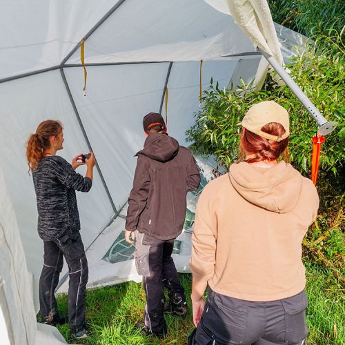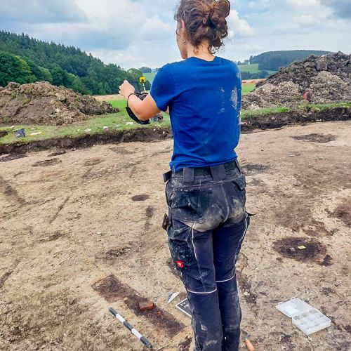 Nach der zweiten abwechslungsreichen Woche konnten die Archäologen – trotz wegfliegender Zelte durch einige Unwetter in der Eifel – beeindruckende Ergebnisse erzielen. Im Laufe der Woche ist es gelungen, fünf Pfostenreihen zu lokalisieren, die während der restlichen Grabungskampagne freigelegt werden sollen.