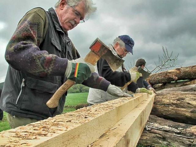Helfer mit einer Vorahnung was erwartet wird, jedoch auch Helfer die sagten „das möchte ich lernen“ sind am Samstag, 18.05.2013 zum Infopunkt gekommen. Als Handwerkszeug stehen Beile in verschiedenen…