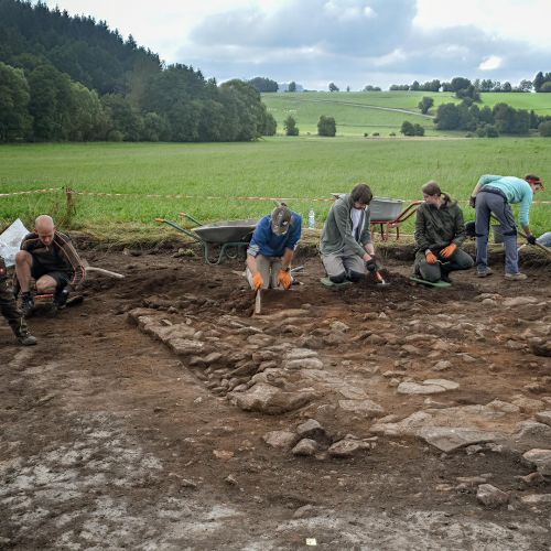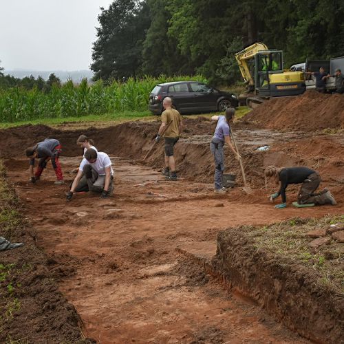 Die nun in Angriff genommene Grabung auf der Duppacher Gemarkung war für die nächste Grabungskampagne vorgesehen. In diesem Fall war es jedoch gut, dass noch ein Plan B vorhanden war. Mittlerweile sind Mauerreste sehr gut zu erkennen und auch die weiteren Fundstücke zeigen, dass es wieder sehr interessant wird.